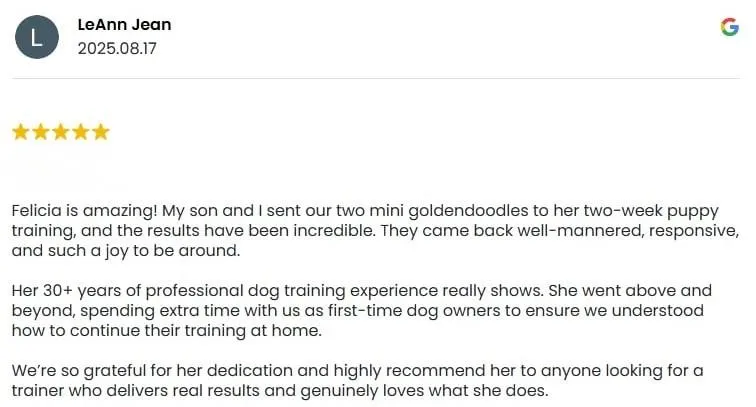 🐾 Next-Step Training Recommendations If we’re the right fit, you’ll know exactly what comes next to turn your dog into the well-behaved pet you’ve always wanted.